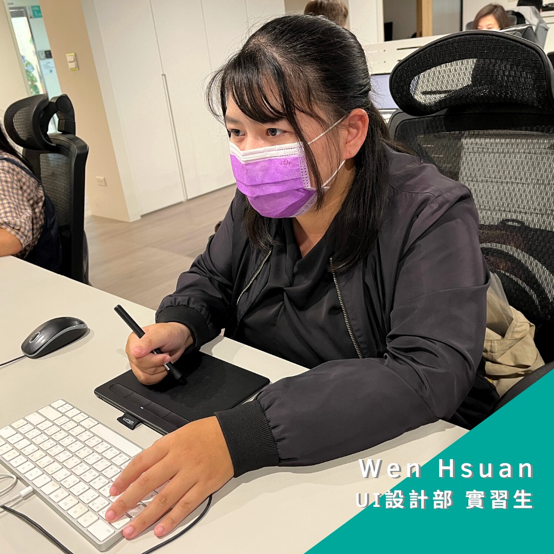 我也相當熱愛學習!為了擴展技能範疇,進修了程式設計,這讓我更關注設計的合理性。隨後,我在兩年半的實習期間,透過在與不同部門的協同合作下,深刻理解跨部門溝通的重要性。