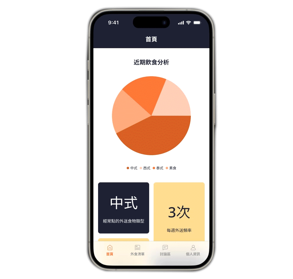 我設計了一款 APP 記錄並分析用戶的外送餐點資訊,使用者將能夠更清晰地了解自己的飲食偏好和習慣,從而更快和更有效地做出餐點選擇。