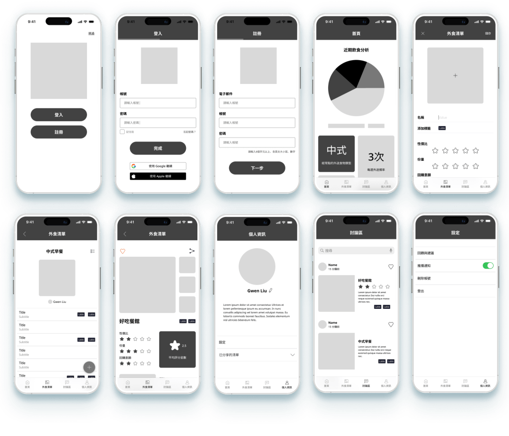 ● 我們如何能夠設計易於使用的界面,讓使用者能夠記錄外送餐點,並提供有意義的洞察來幫助他們了解自己的飲食模式和偏好?